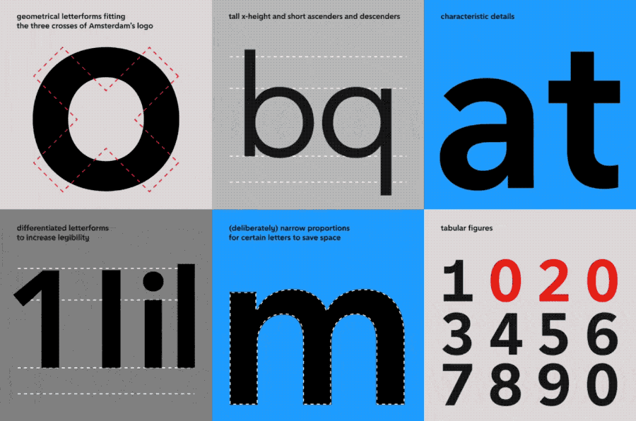 Gemeente Amsterdam heeft een custom lettertype laten maken voor al hun communicatie: de Amsterdam Sans. Ontworpen door Bold Monday, in samenwerking met Thonik, die 22 jaar geleden de identity voor de gemeente ontwierp en die nog steeds overziet. Tot nu toe was Avenir de huisstijlletter, maar de jaarlijkse licentiekosten waren zo fors dat het loonde om een eigen lettertype te laten maken. Ook kon zo een aantal visuele issues met de Avenir worden getackled.