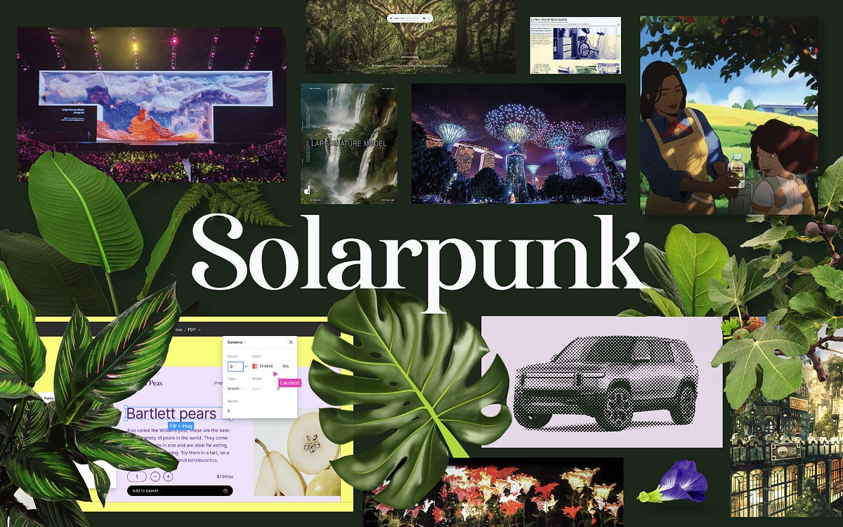 Na jaren van brutalisme gloort er een nieuwe esthetiek aan de horizon: Solarpunk. Het verbindt hightech met toekomst op een humane en optimistische manier (in tegenstelling tot Cyberpunk, dat rauw, hoekig en dystopisch is). Dylan Field (CEO van Figma) is fan van Solarpunk en ziet het als de nieuwe design direction voor z’n bedrijf. Ik zie het wel zitten ☘️