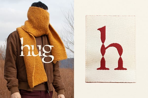 De brand identity die Adam Lowe ontwierp voor Hug valt helemaal samen met de missie van het wollen sjalenmerk: the search for warmth. Warmth is ook de naam van het custom typeface dat zo mooi refereert aan de handmade knitwear. Fantastisch voorbeeld van expressive branding, als tegenhanger van het generieke minimalism dat je overal ziet.