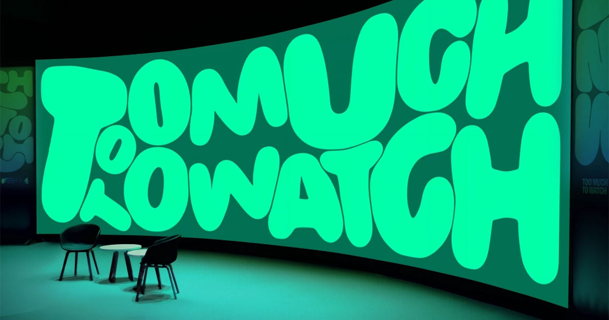 Studio Kiln was tasked with developing an identity for the Royal Television Society’s Cambridge Convention that evokes the Society’s theme of “Too Much to Watch” without feeling pessimistic or anxiety-inducing. The logo leverages colorful, inflated bubble letterforms arranged so tightly that each letter is competing for space and attention—not unlike the continuous flow of content clamoring for our increasingly fragmented attention. Complex motion designs based on a physics simulation only add to the effect—with bespoke rendering technology to manipulate the letterforms at random.