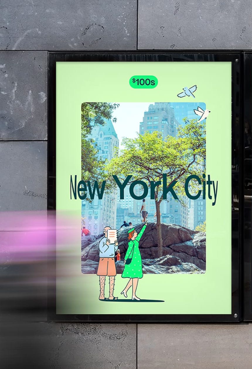 DesignStudios repositioning for Scott’s Cheap Flights, which changed its name to Going, is expressive and playful and solidifies the platform’s growth into a major player in the travel industry. The hardworking logo captures the unpredictable journey of travel, featuring a “G” with a reverse loop to represent the brand’s unique deal-first approach that begins with finding the lowest price. Set in oblique type, the mark evokes momentum and movement reinforced by an arrow-like stroke ending. The color palette is inspired by the biological diversity of the four hemispheres, its motion principles mimic spinning a globe and picking a travel destination, and its imagery is a mix of illustrations and user-generated content. The identity captures Going’s role in fostering adventurous and inquisitive travel.