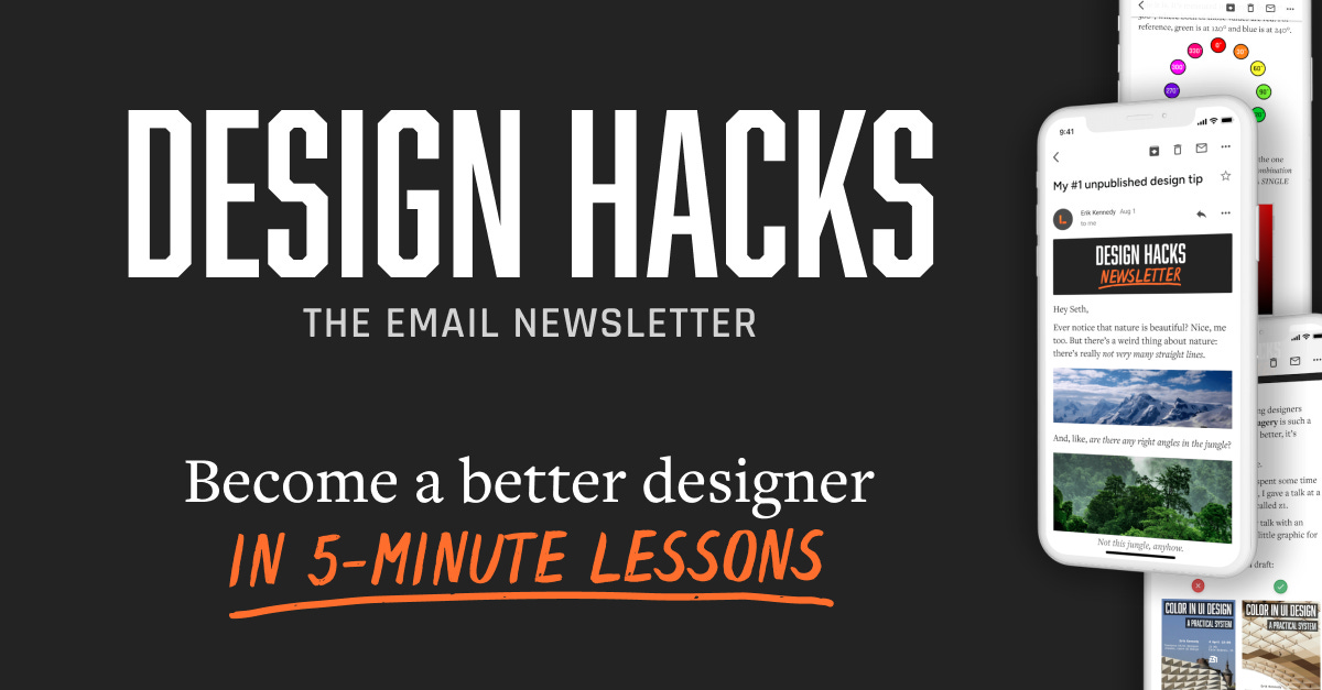 Erik D. Kennedy schrijft de meest praktische nieuwsbrief over UI design die ik ken: Design Hacks. Elke editie behandelt hij een onderwerp aan de hand van real life voorbeelden en geeft je tips hoe je het in de praktijk kunt toepassen. En altijd enthousiast geschreven.