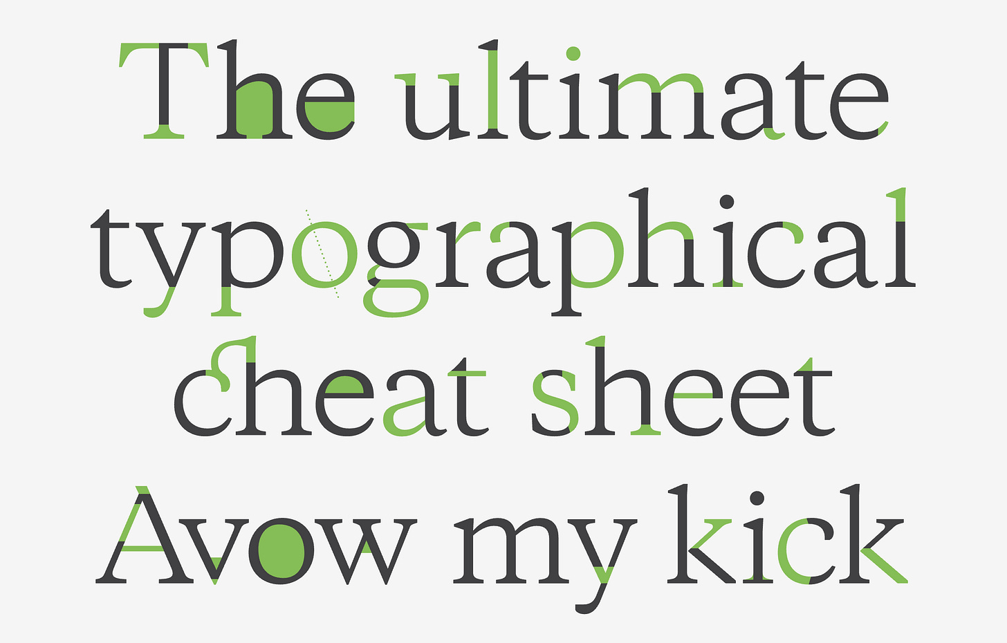 Interactive Typography Cheatsheet toont de anatomie van letters met alle specifieke benamingen.