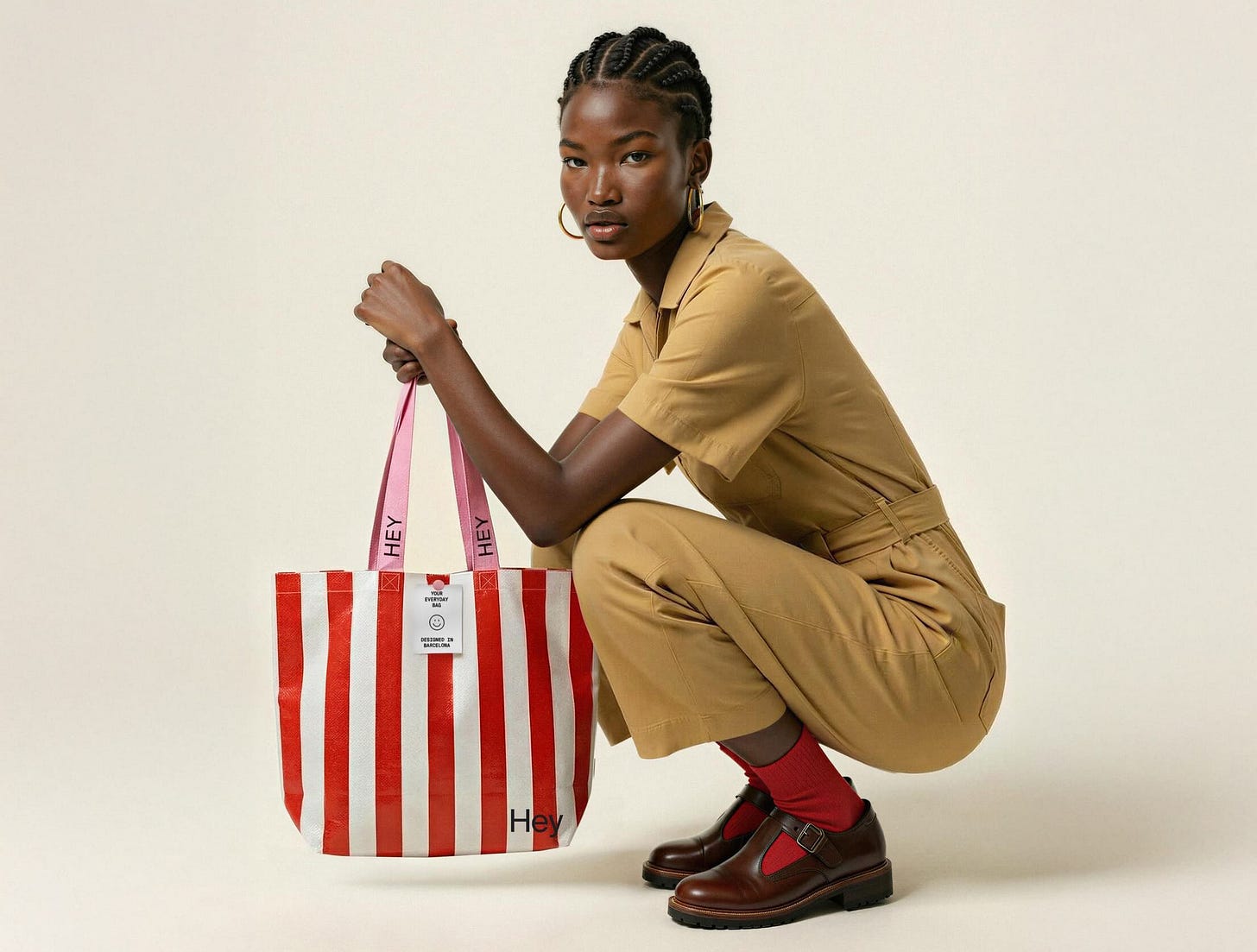 De Spaanse creative studio Hey heeft een uit de kluiten gewassen webshop met designer goodies en swag. Hun nieuwste product is The Everyday Bag, volledig ontworpen met AI. De campagne-modellen zijn ontwikkeld in samenwerking met AI-modellenbureau The Clueless. Op Insta delen ze hun proces.