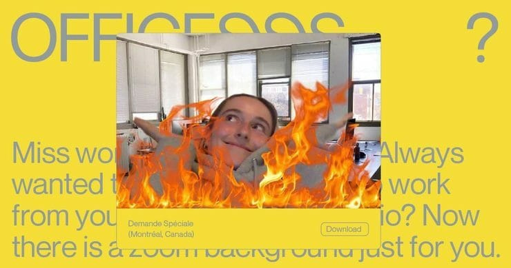Officesss biedt Zoom-backdrops van lege ontwerpbureaus. Kun je remote in je agency-of-choice werken.