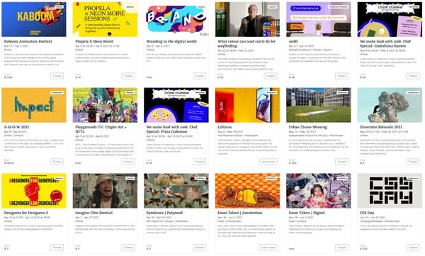 Neon Moiré goes Dutch! De beste Nederlandse design events zijn op één plek verzameld en makkelijk te filteren op type en locatie. En als je het overzicht liever thuisbezorgd wil, schrijf je dan in voor de nieuwsbrief.