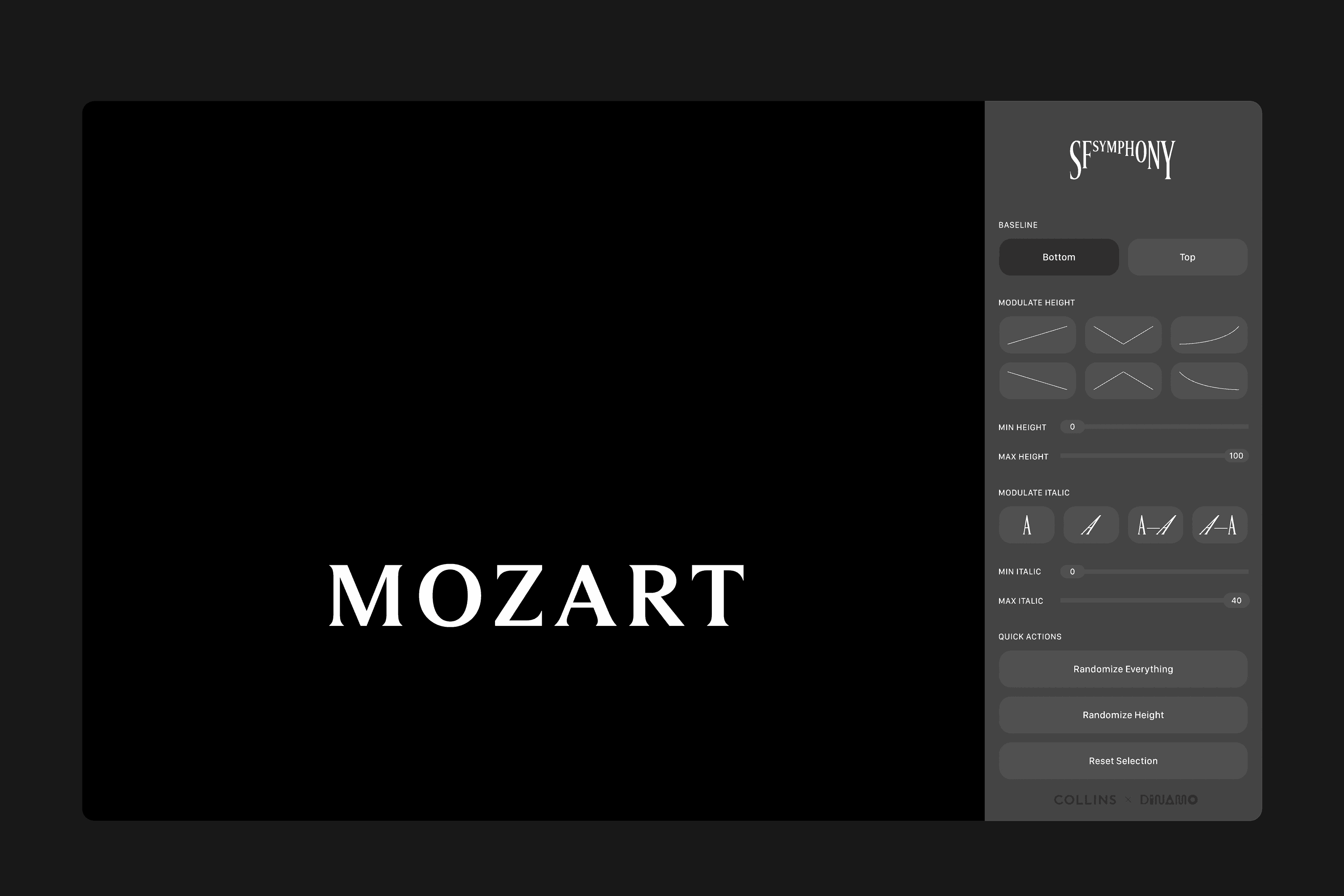 Collins ontwierp een heerlijke visual identity voor The San Francisco Symphony. De eerste viool wordt gespeeld door de variable font typografie die samen met DINAMO is ontwikkeld. In dit soort toepassingen kunnen variable fonts echt shinen. Kijk maar.