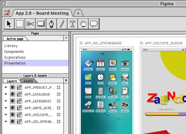 De aanleiding was het vele thuiswerken van de afgelopen tijd. Michael vroeg zich af hoe thuiswerk-apps zoals Slack, Spotify, Zoom en Figma eruit zouden zien in de tijden van Mac OS 9. Hij maakte een uitgebreide components library in Figma (de UI kit is vrij te gebruiken) en ontwierp hiermee alle interfaces. Ik kreeg een dikke vette glimlach van het resultaat: