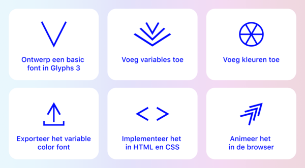 Die workshops vormden de basis voor de Variable Font Course, waar we de afgelopen tijd aan hebben gewerkt. Arthur leert je in 11 videolessen hoe je een variable color font maakt, het verwerkt in HTML/CSS en laat animeren in de browser. Kijk maar: