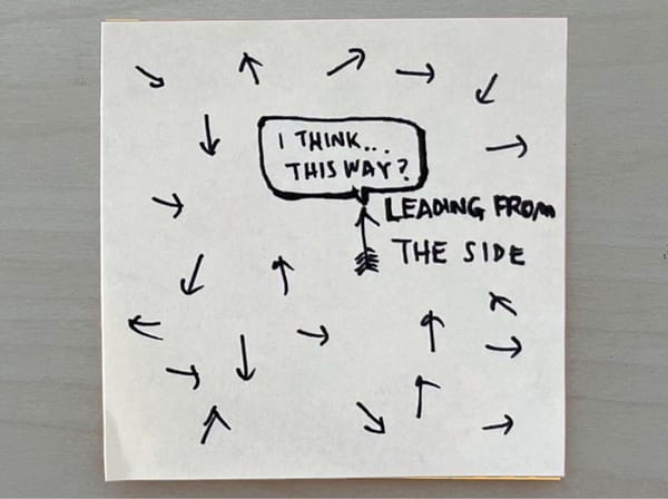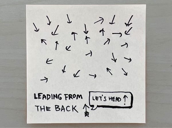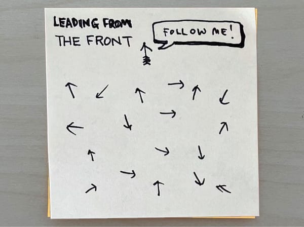 John Maeda heeft in z'n carrière veel designteams aangestuurd. Als maker voelde hij zich nooit zo comfortabel om voor de troepen uit te lopen, maar leidde hij meer by example. Het heeft echter nadelen om midden in het team te staan dat je aanstuurt. Maar ook leiding geven door achter het team te staan is niet ideaal.